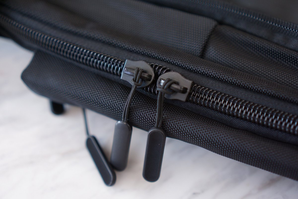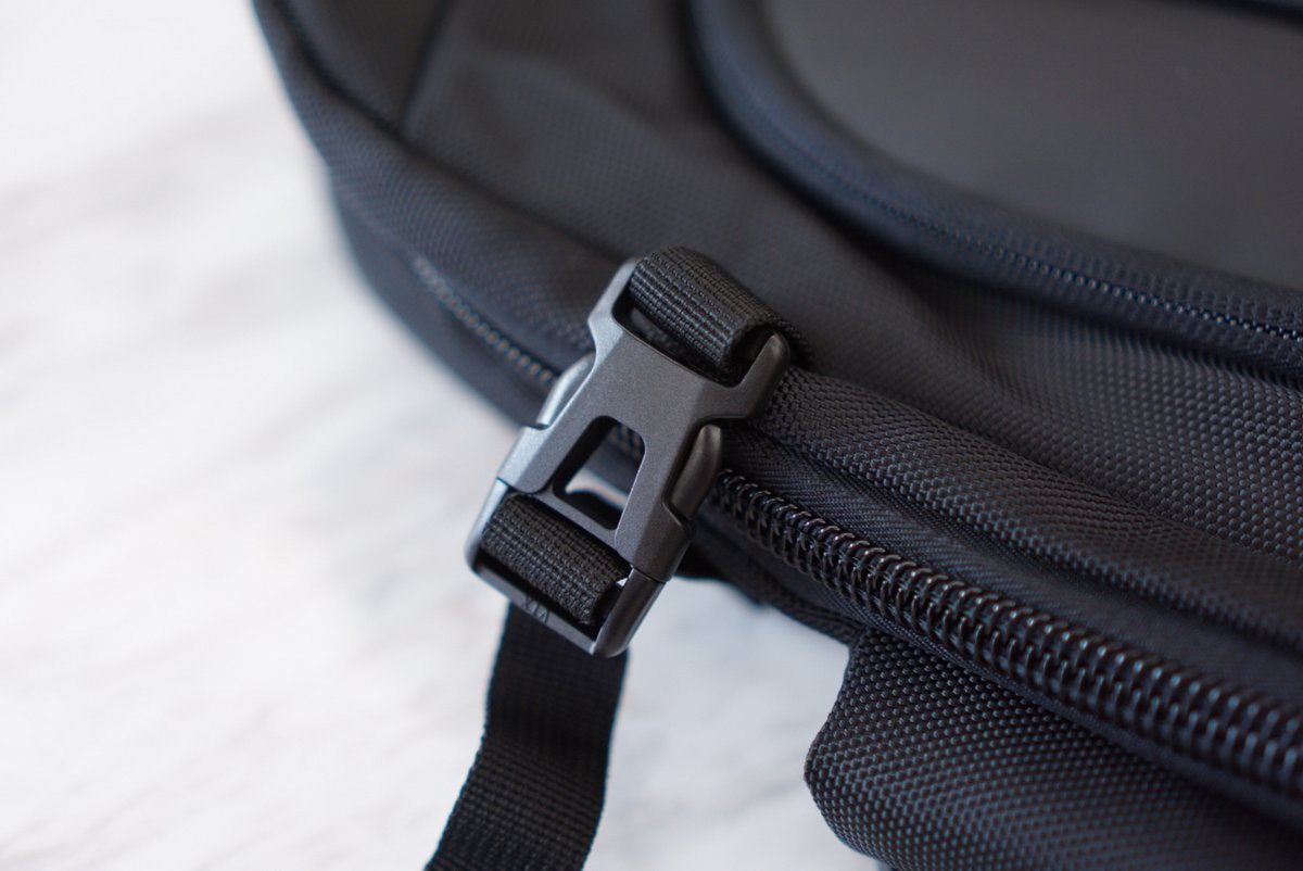 ▼先說相同的部分,Track後背包採用耐用的YKK拉鍊,相當滑順。左側背帶同樣設計有收納夾層可放置卡片。前袋內設計有鑰匙扣,方便拿取鑰匙。兩個尺寸的背包都設計有行李插桿掛帶,都可放在行李箱上移動。Track後背包兩側都有設計放置水杯、雨傘的空間
