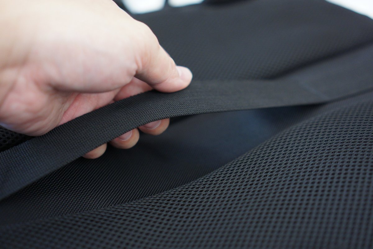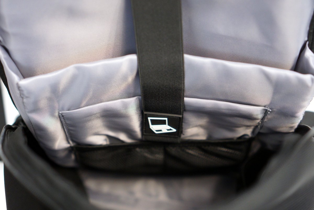 ▼18L的Track後背包在前袋的夾層是採彈性網袋設計,主袋空間內同樣有設計拉鏈夾層,但底部兩側沒有網袋。放置筆電的空間也變成彈性夾層的設計,仍是可以放置小尺寸的筆記型電腦